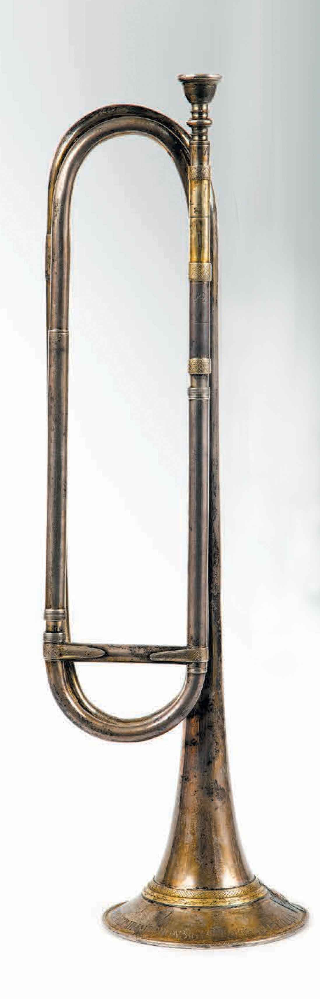 мундштучная трубка инструмента прикреплена ко второму крону скобкой, гравированной растительным или геометрическим рисунком;