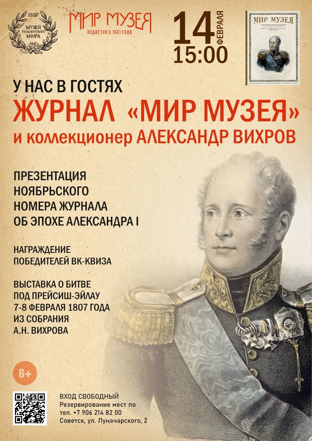 13 и 14 февраля 2026 года в Музее Тильзитского мира состоялась встреча команды журнала с читателями, в ходе которой состоялась презентация специального номера, посвящённого эпохе императора Александра I. Этот номер стал результатом поездки редакции журнала в Советск в конце августа 2025 года.