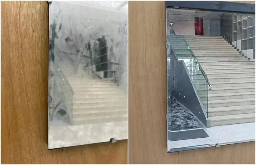 Волонтёр подумал, что зеркало просто грязное, и протёр его туалетной бумагой. В результате большая часть 40‑летнего пыльного покрытия была стерта. Только после этого сотрудники музея заметили, что происходит, и попытались остановить волонтёра.