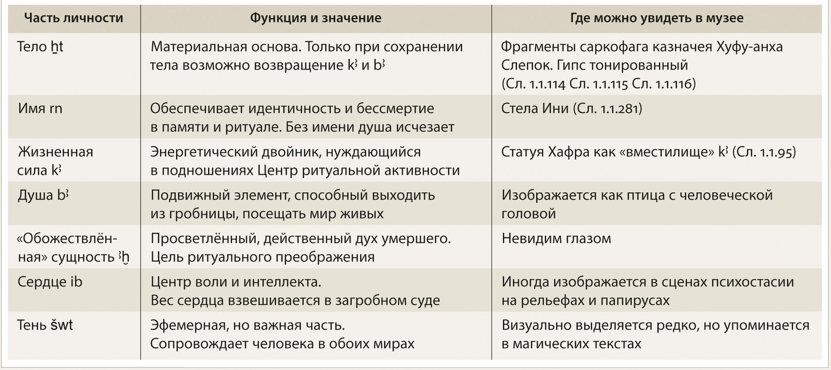 Части личности человека в представлении древних египтян