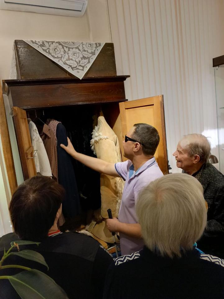 Особый интерес у незрячих экскурсантов вызвал зал истории советского быта. Посетители с интересом ощупывали предметы мебели, посуду, одежду, книги и другие артефакты. Люди с остаточным зрением описывали детали экспонатов для тех, кто не мог видеть их совсем.