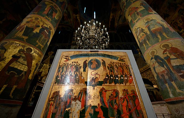 В Музеях Московского Кремля завершилась плановая реставрация одного из древнейших памятников из собрания Успенского собора — иконы «Страшный суд», проводившаяся с 2016 года.