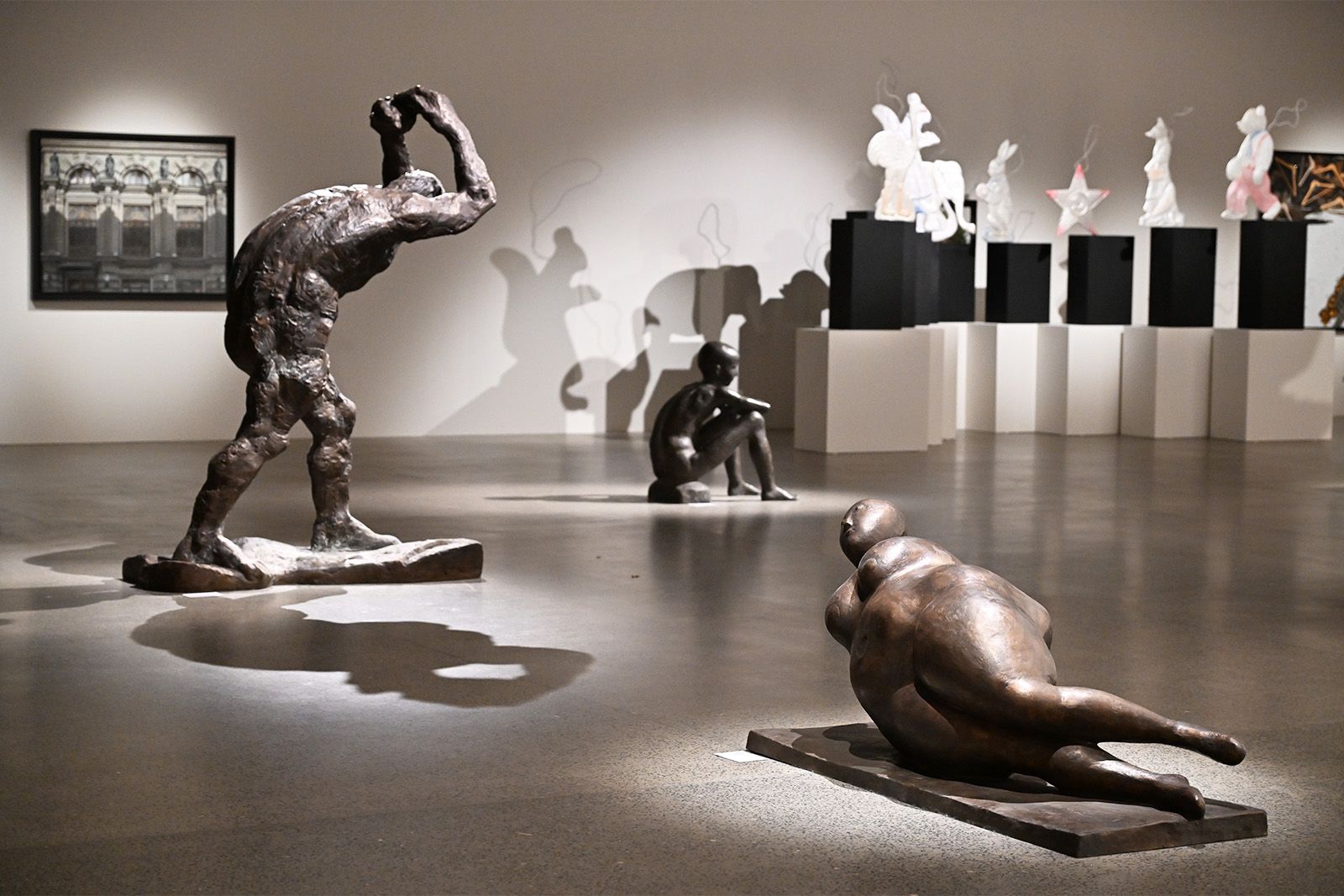 На втором и третьем этажах работает выставка «Шаг с пьедестала: скульптура в реальном пространстве», объединяющая московскую и петербургскую скульптуру второй половины XX века и соседствующая с живописью и графикой шестидесятников Эрика Булатова, Олега Васильева, Юрия Злотникова и Семена Файбисовича. На четвёртом этаже открылась выставка «Африканское искусство: боги, предки, жизнь». На пятом этаже представят инсталляцию Гриши Брускина Dies illa, созданную специально для музея. Там же расположена инсталляция Александра Бродского «Приют невинных».