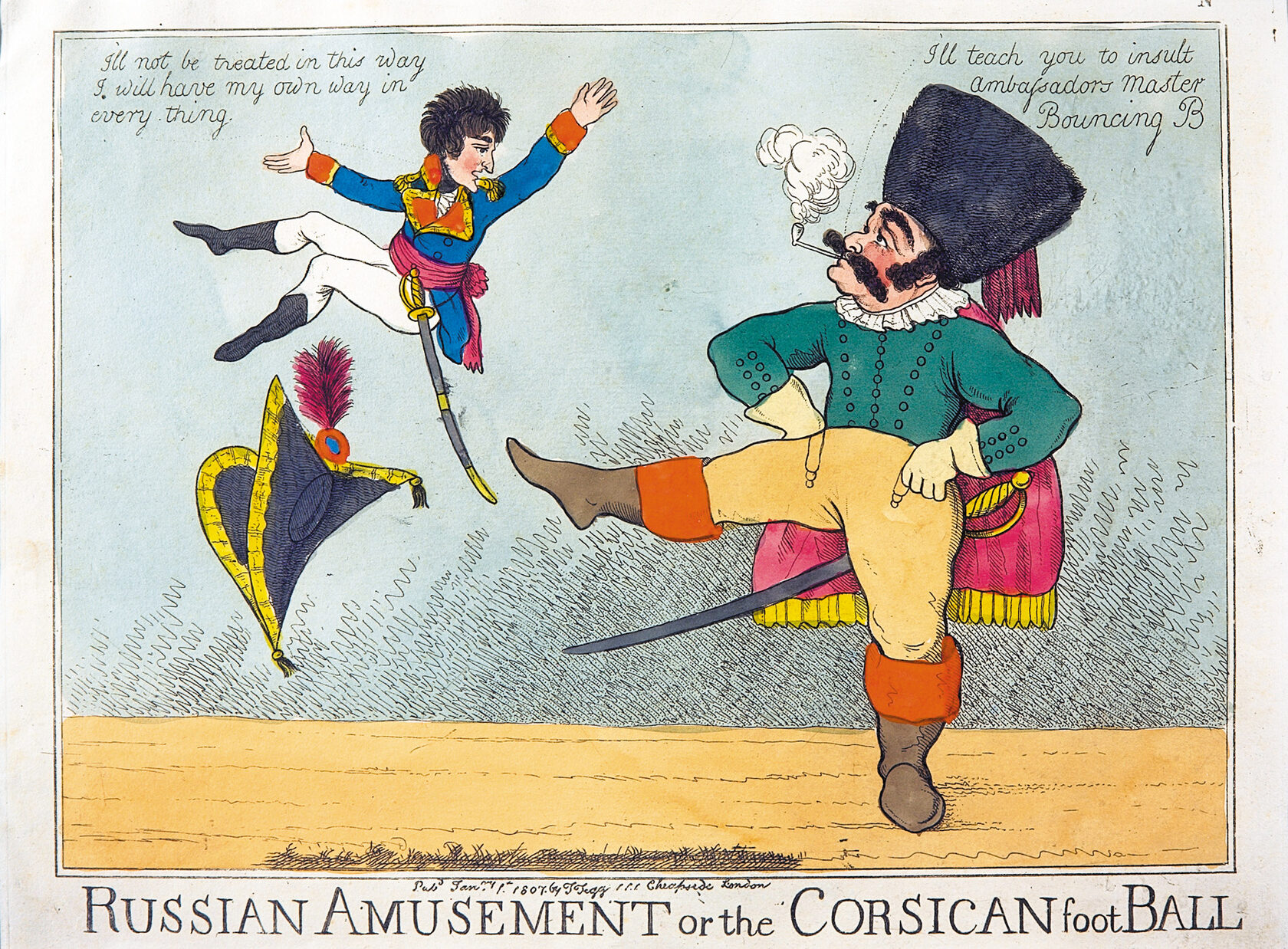 На илл: Русская забава, или Корсиканский футбол. Пирси Робертс. 1807. Бумага, офорт, акварель. 27 × 36.
