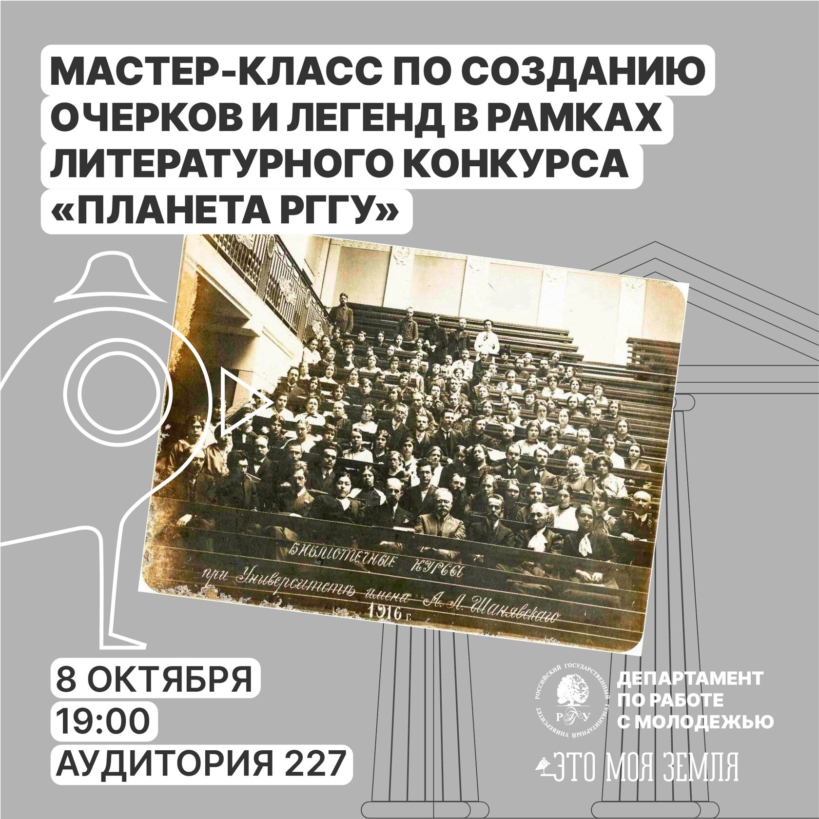 8 октября 2025 года в РГГУ пройдёт мастер-класс по созданию очерков и легенд в рамках литературного конкурса «Планета РГГУ».